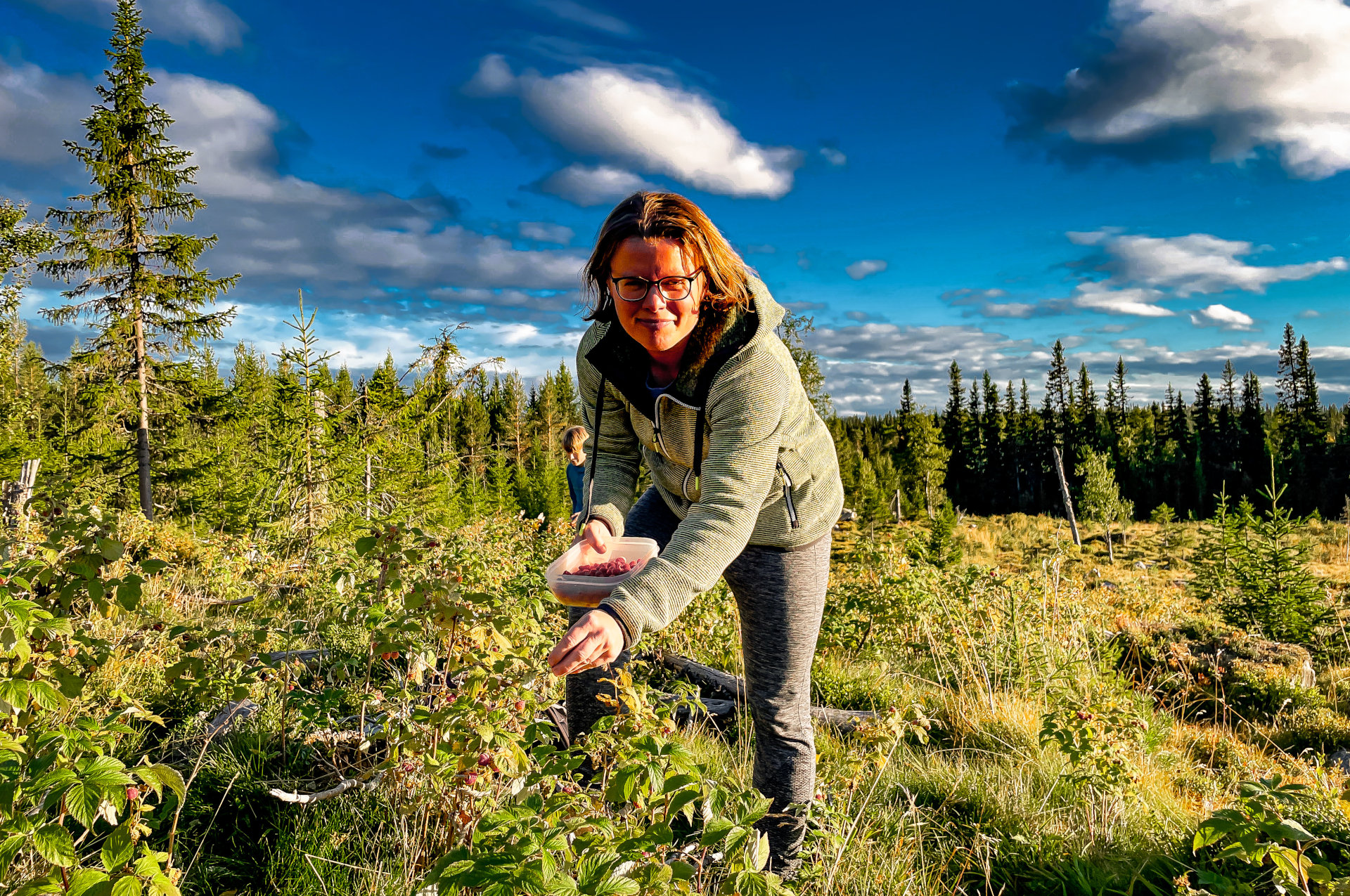Blåbärsplockning vid Stortjärnberget. Man kan även hitta renhorn utanför stigarna.