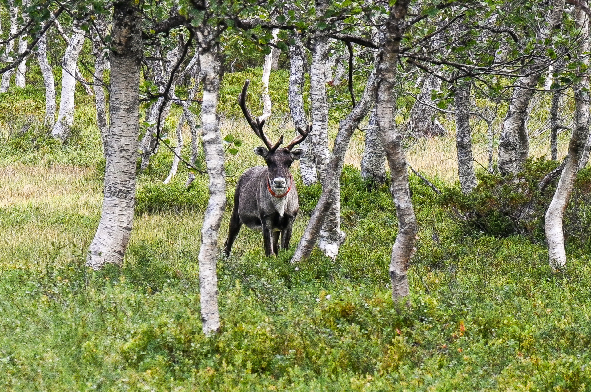 Ren i björkskogen längs långdistans-vandringsleden Jämt-Norgevägen