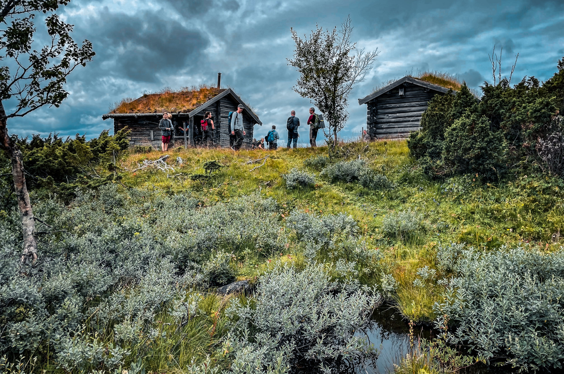 Vandring till Östra Arådalen och rast vid en av de restaurerade fäbodstugarna