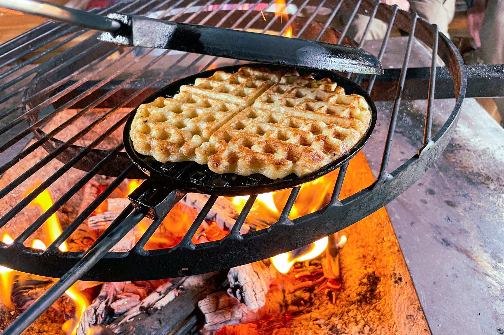 Våfflorna från gjutjärnspannan över elden är de bästa