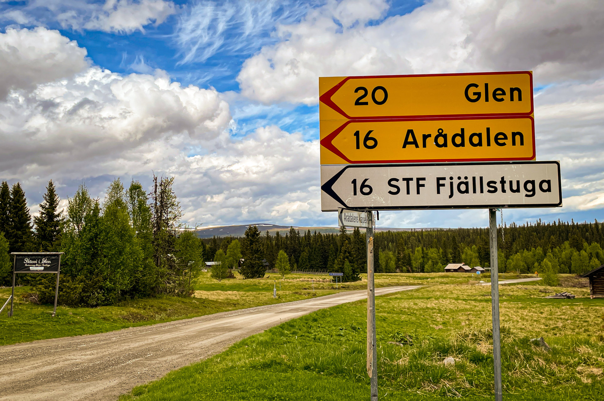 Vägvisare i Galåbodarna vid vägkorsningen till Glen
