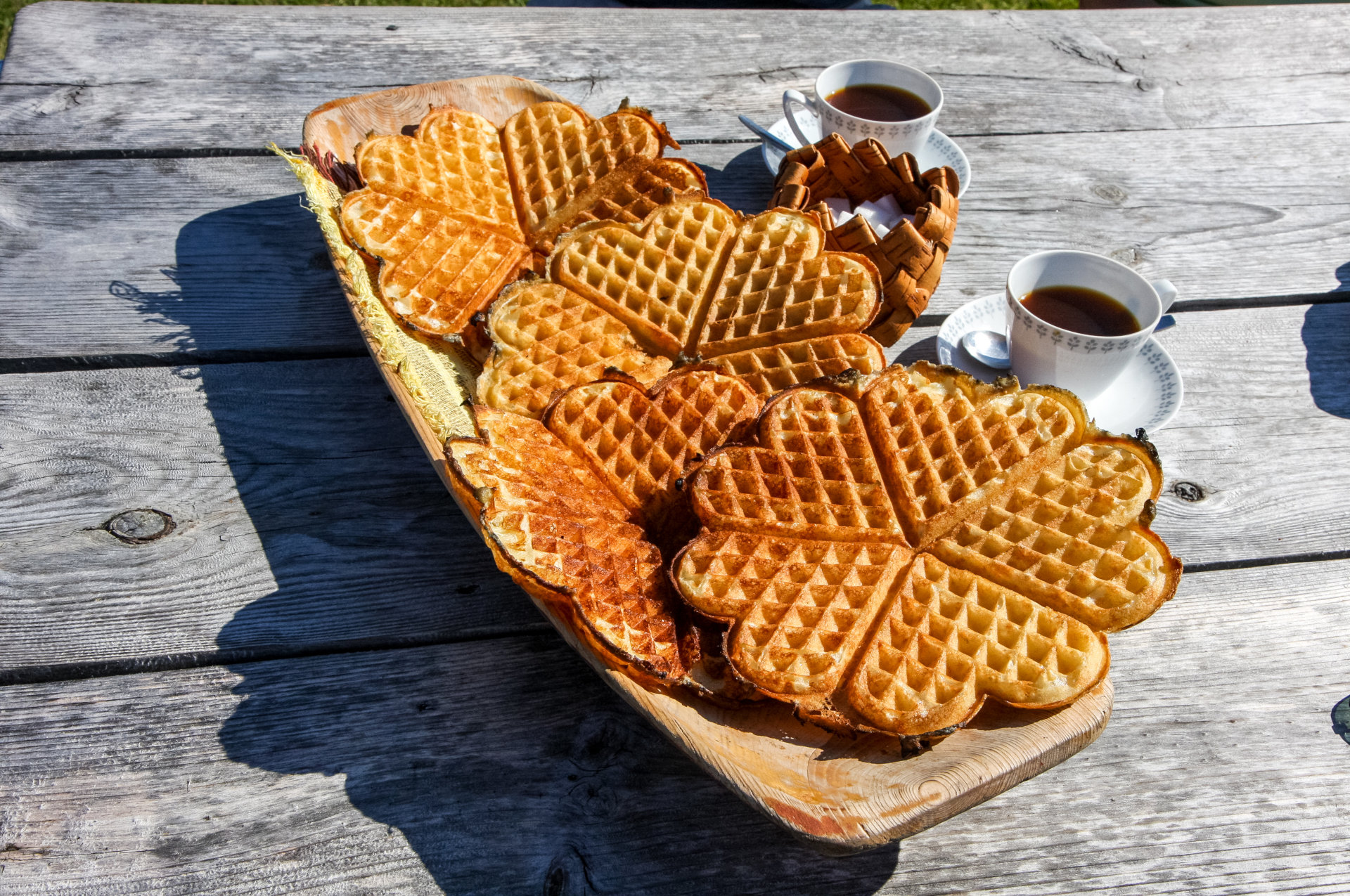 A short tour, but popular nonetheless, as during a few weeks in summer coffee and waffles – freshly baked from the wood-burning stove – are served at the mountain pasture. There are also Sami specialities available as a light lunch. Cows and goats can also be found there in the summer and they are always happy to see new visitors.
