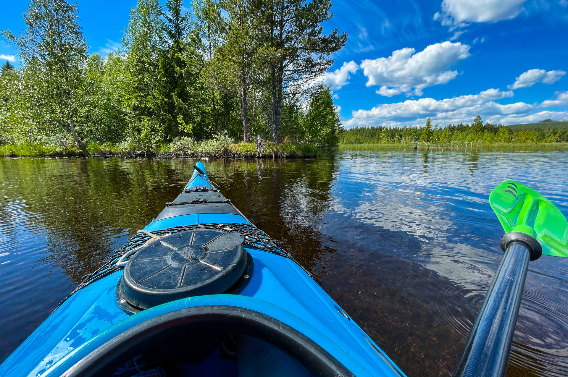 Paddla med Prijon-kajaken på sjön längs Ljungan