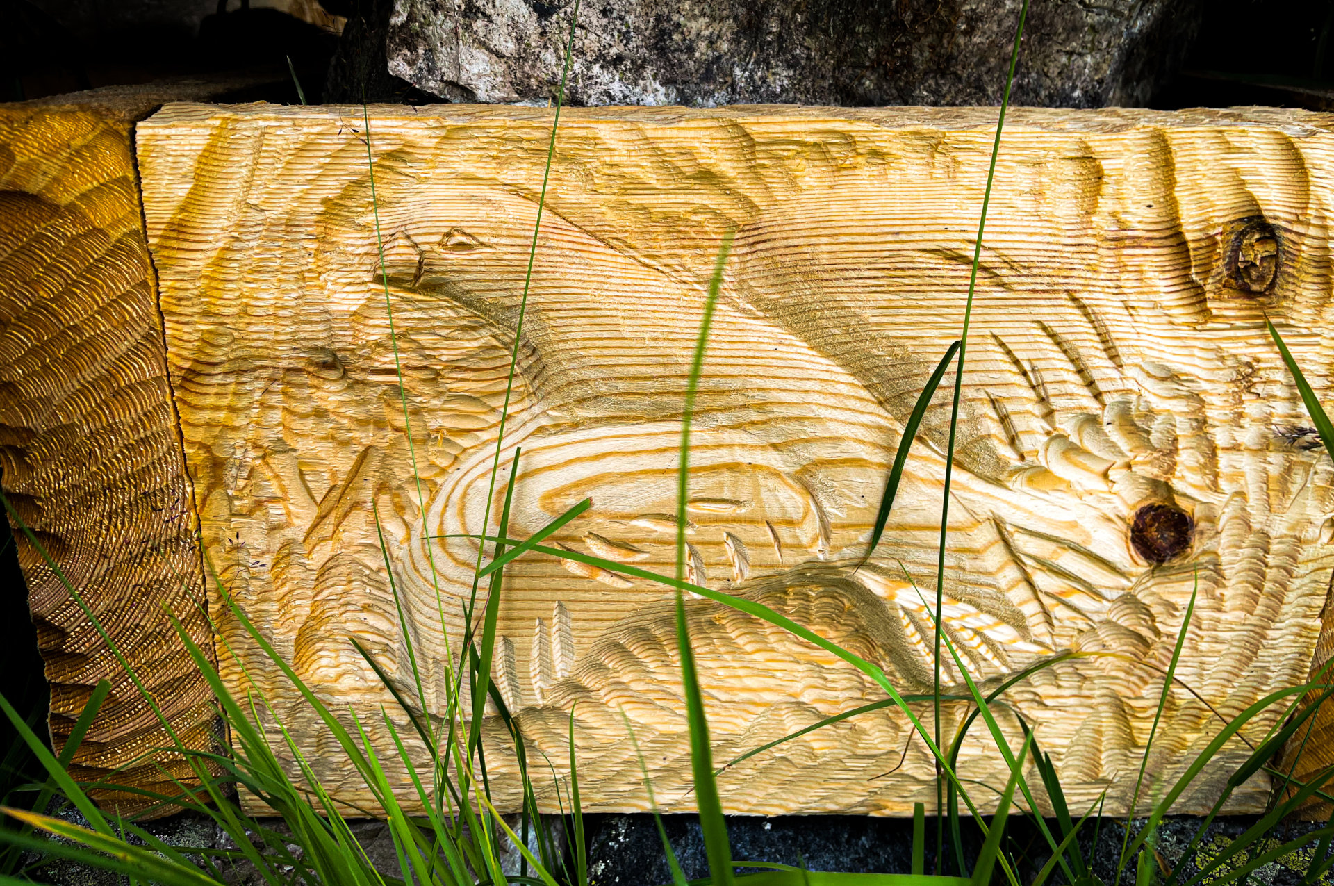 Konstverk i Oviksfjällen. Här ett bord i Östra Arådalen, dekorerat med fyra djurmotiv.