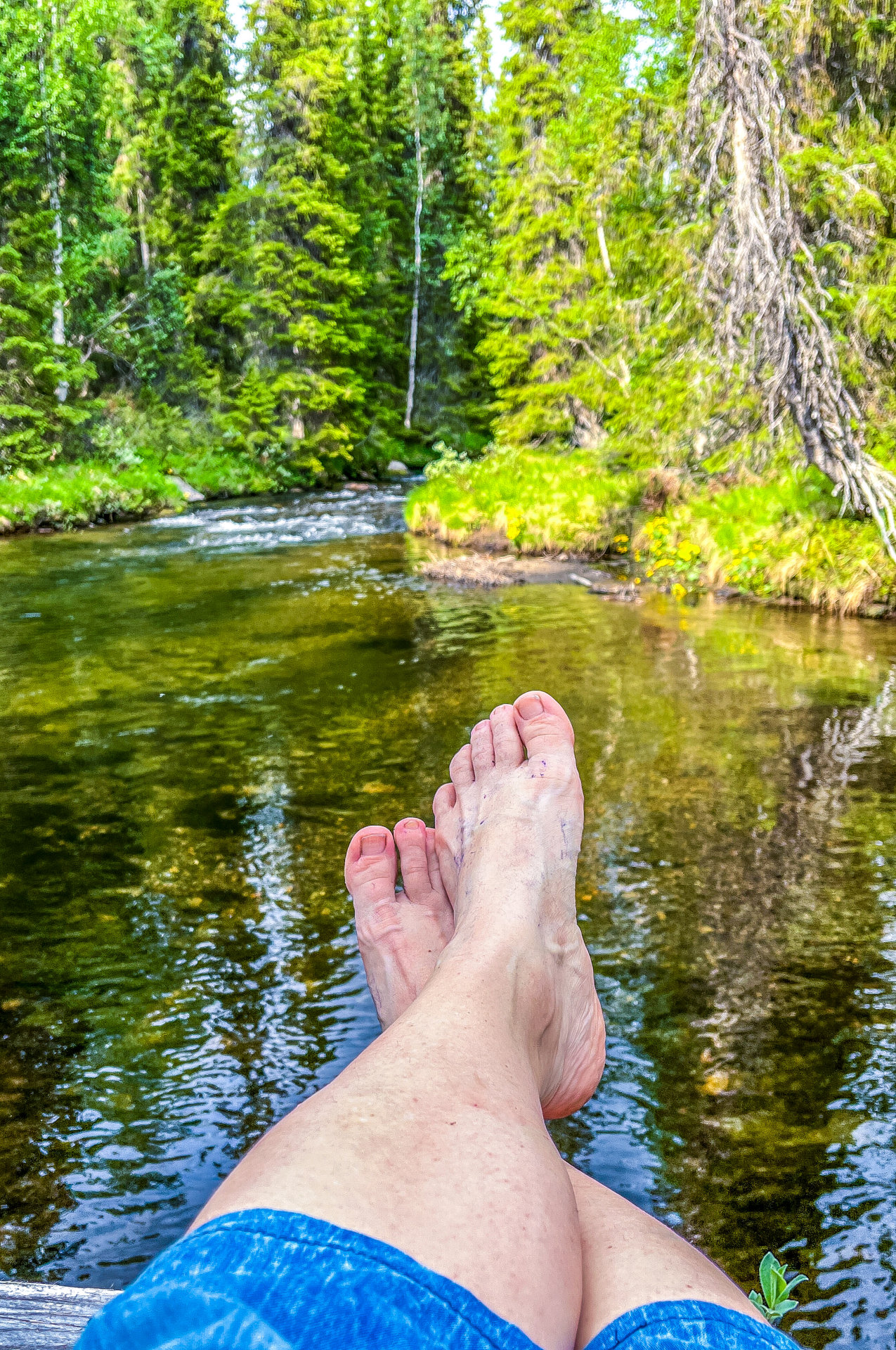 Füße abkühlen an einem der zahlreichen Bergseen im Jämtlandsfjäll
